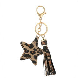 Moda PU estampado de leopardo con flecos estrella de cinco puntas llavero colgante cuero estampado de leopardo estrella coche bolsa accesorio