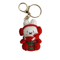 Portachiavi portachiavi di animazione a maglia di natale in puro tessuto a mano appeso a mano con coniglio